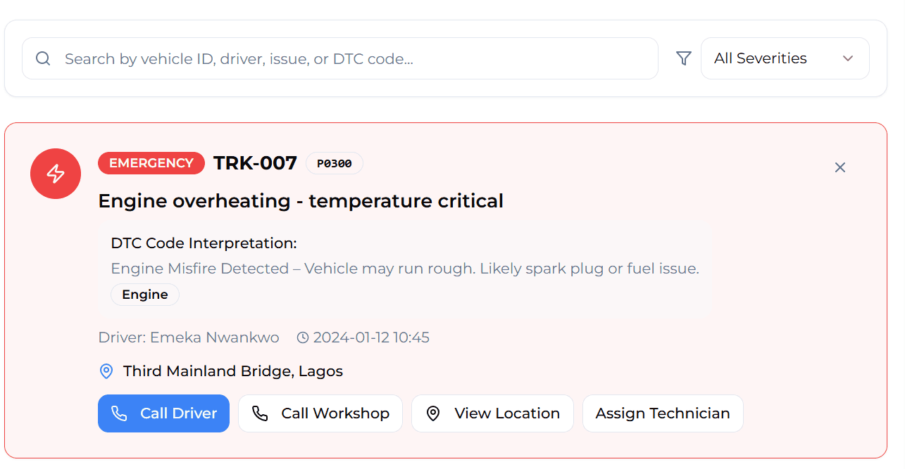 Kinetyq monitors vehicle health in real time and alerts you early when something is likely to fail. Small issues are identified before they turn into breakdowns costly repairs or downtime so fleets stay proactive instead of reactive.