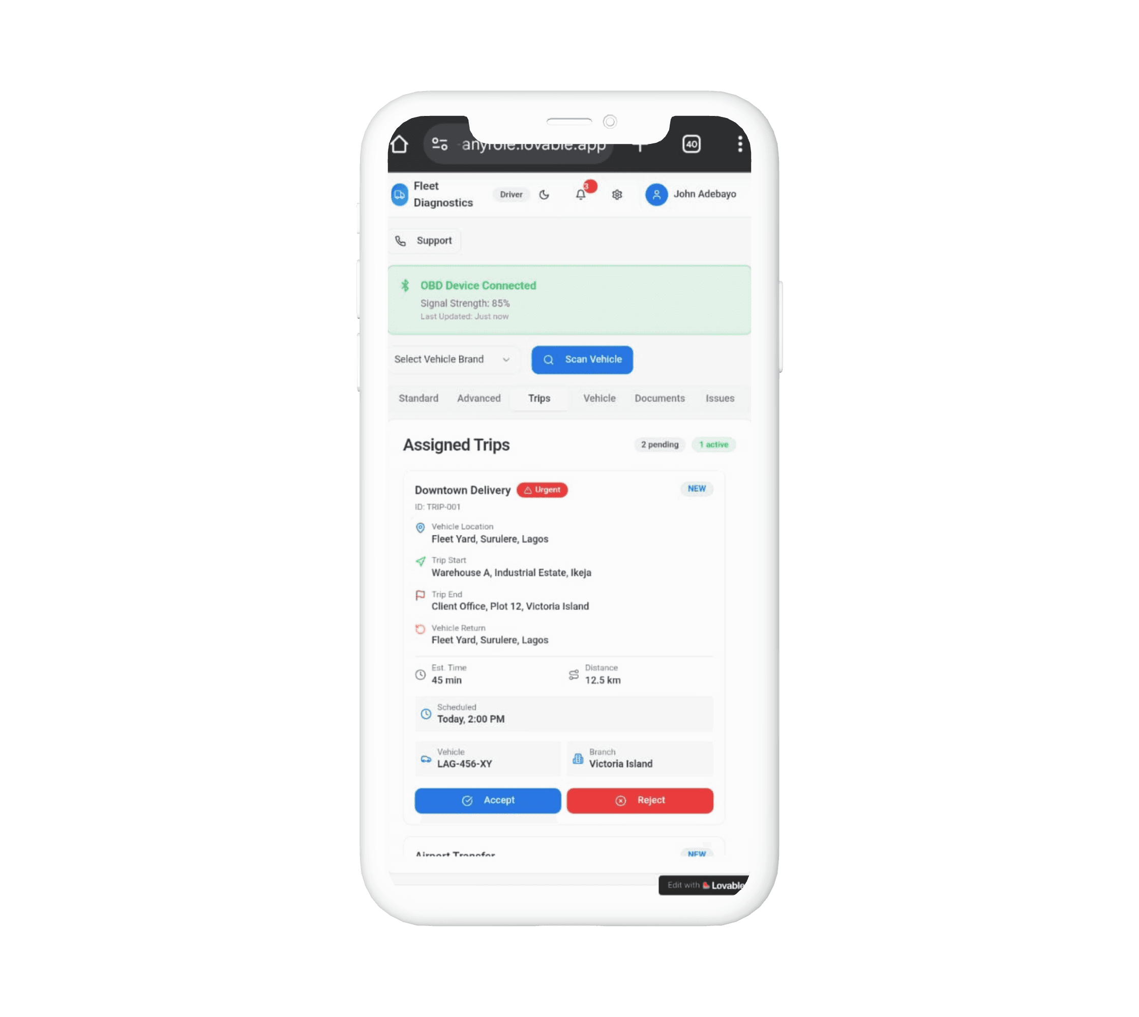 Clear trip tracking and vehicle insights that help drivers stay productive and on schedule.